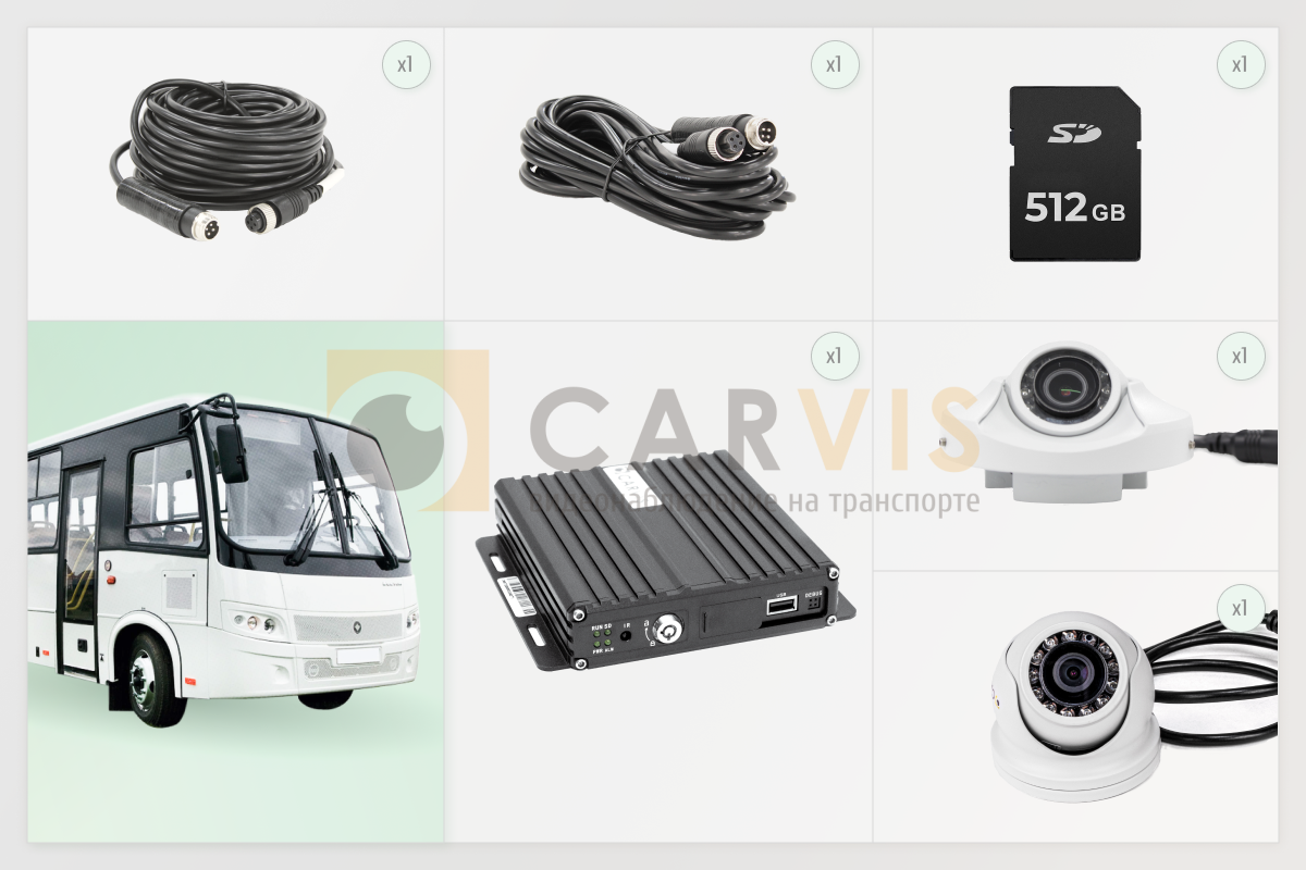Предложенный комплект представляет собой стандартное решение для видеонаблюдения в автобусах среднего класса. В зависимости от конкретных потребностей вашей организации и особенностей автобуса, можно создать индивидуальный комплект видеонаблюдения.