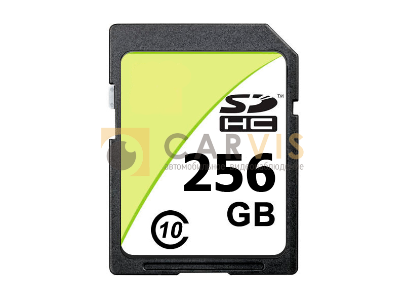 Карта памяти объёмом 256 Гб совместима со множеством устройств, в частности с автомобильными регистраторами. Класс скорости карты памяти - 10-й.