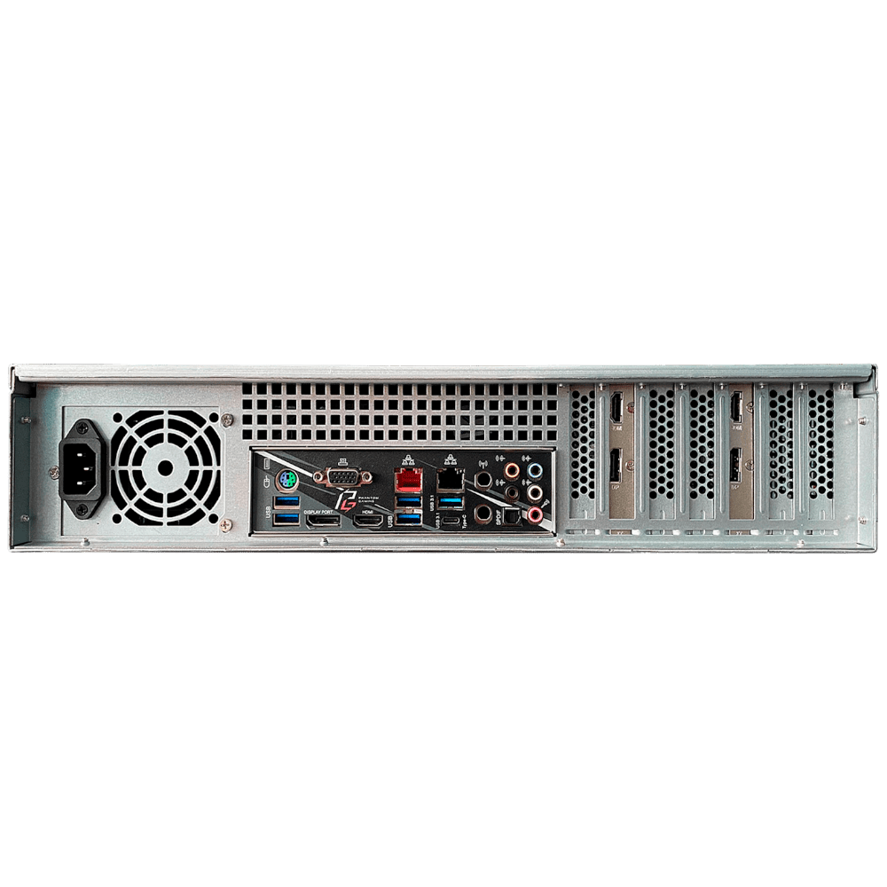 - Многомониторный вывод: Отображение до 128 сетевых каналов на четырех мониторах через независимые видеовыходы DisplayPort и HDMI, обеспечивая полноценный обзор системы видеонаблюдения.
