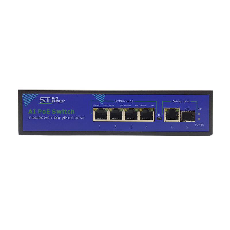 Данный PoE коммутатор ST-S42POE(4G/1G/1S/65W/А) версии 3 предназначен для построения проводных сетей с напряжением питания 48В. Он оснащен четырьмя портами PoE, поддерживающими скорость передачи данных до 1000 Мбит/с, одним uplink портом (10/100/1000 Мбит/с) и одним SFP портом (1000 Мбит/с).
