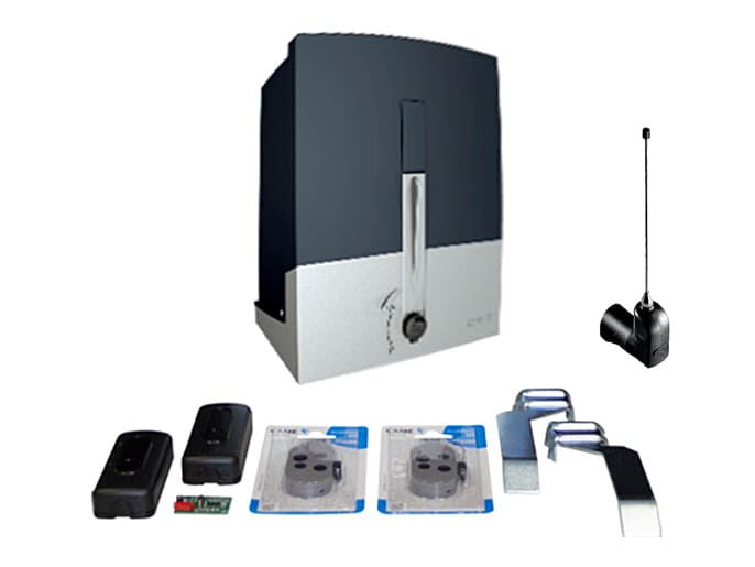 Комплект автоматики Came BXL (8K01MS-019) для откатной створки шириной до 10 м, весом до 400 кг состоит из привода BXL04AGS, фотоэлементов DIR10, платы-радиоприемника AF43S, двух пультов ДУ TOP44RGR и антенны TOP-A433N (433.92 МГц).